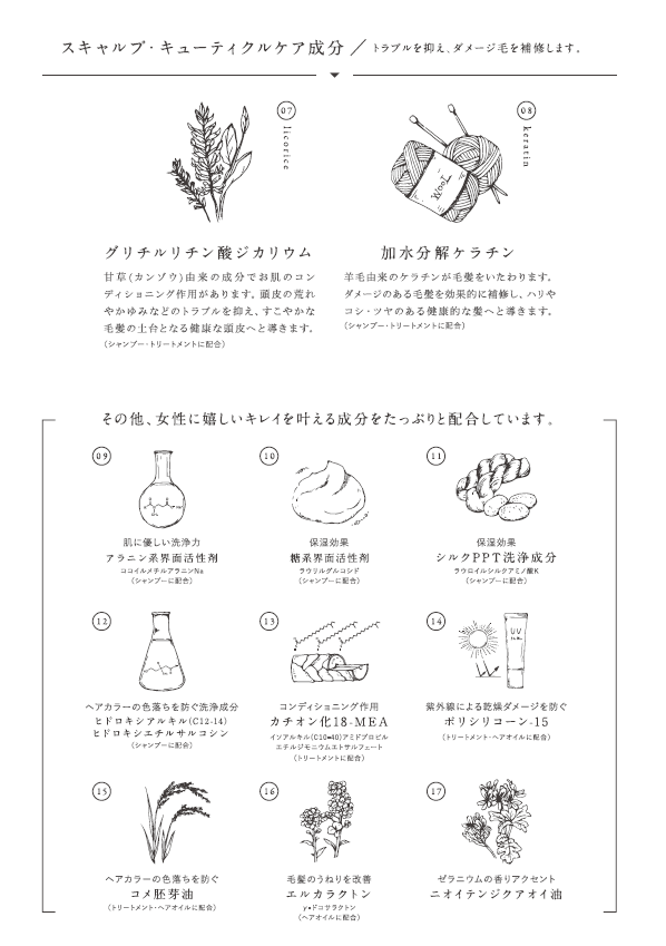 髪と頭皮に優しい美容成分処方・配合方法がさらなるキレイへの一歩を踏み出すきっかけへと導きます。